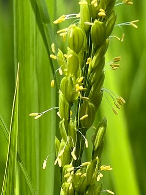 8月に入り、京都・京北の京都ファームの田んぼのお米も、次々と穂を出しています。
